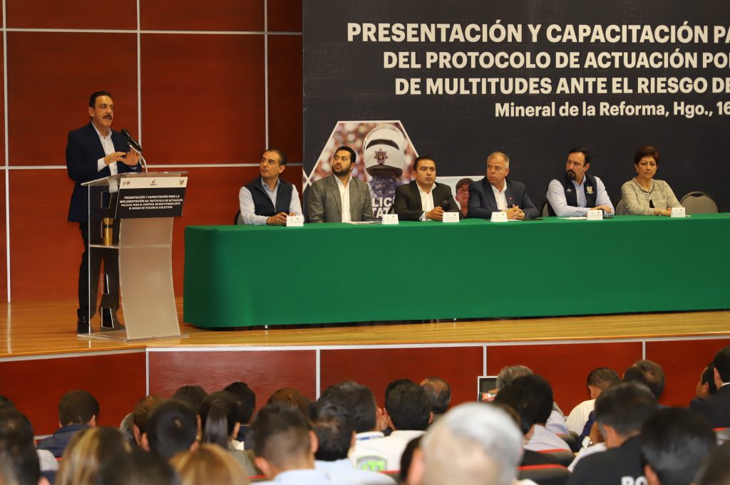 Pachuca, Hgo. – El secretario de Gobierno Simón Vargas Aguilar agradeció a 46 alcaldes y representantes de los 84 ayuntamientos por asistir a la capacitación del Protocolo de Actuación Policial para el Control de Multitudes ante el Riesgo de Violencia Colectiva, mejor conocido como el Protocolo Antilinchamientos.