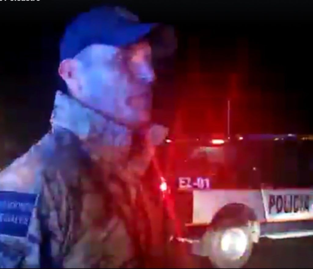 Yair Hernández Guzmán, Director de Seguridad Publica y Movilidad de Apan, se acerca al conductor para preguntar en forma déspota si estaba alcoholizado, pero sin decir el motivo de la persecución.