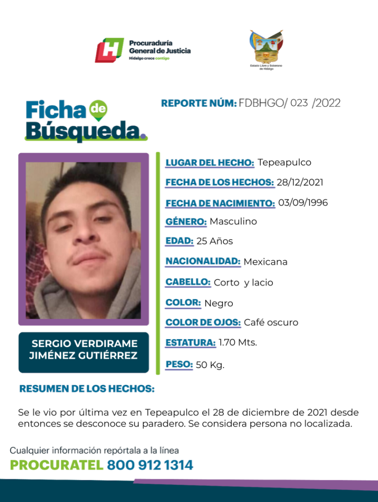 * SERGIO VERDIRAME JIMÉNEZ GUTIÉRREZ, a quien se le vio por última vez el 28 de diciembre de 2021 en #Tepeapulco.