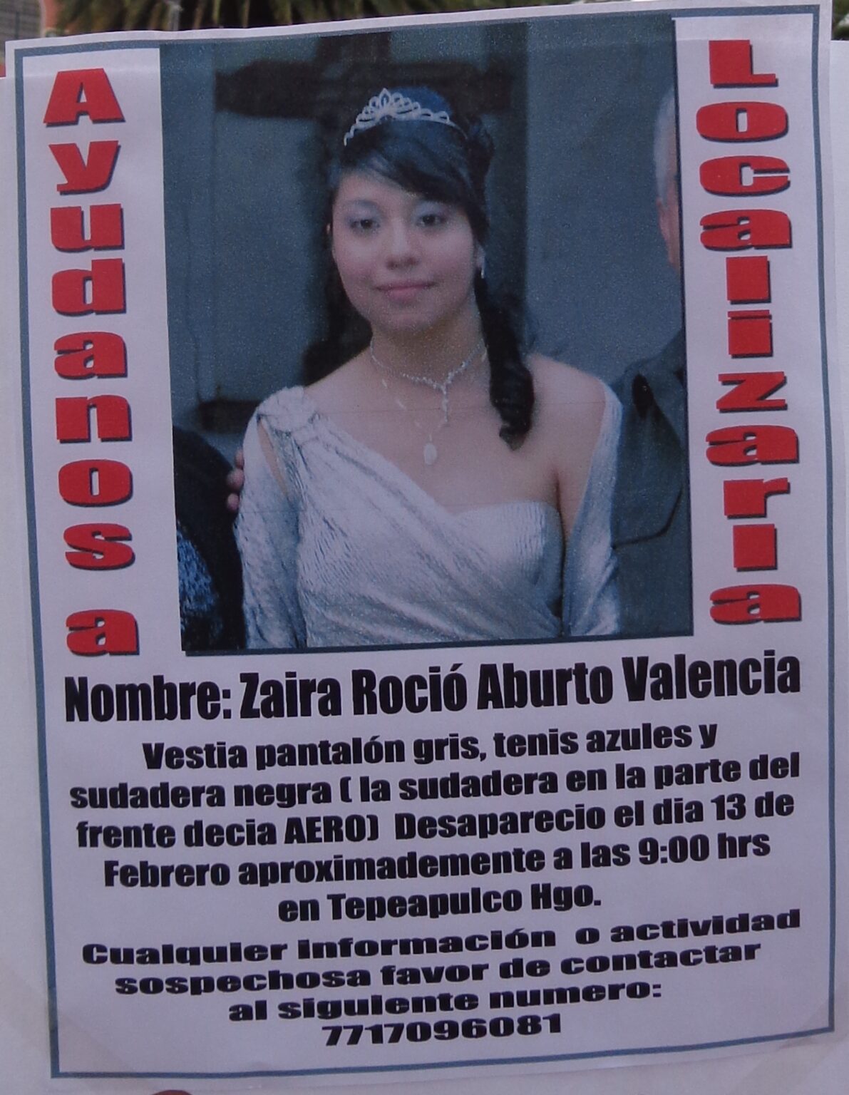 TEPEAPULCO, Hgo.-  Una mujer llora, no quiere comer, tampoco dormir, su salud poco a poco se está minando, su único deseo es volver a tener a su lado a la pequeña Zaira Rocío Aburto Valencia, de 16 años, sustraída desde hace quince días de su propio domicilio.