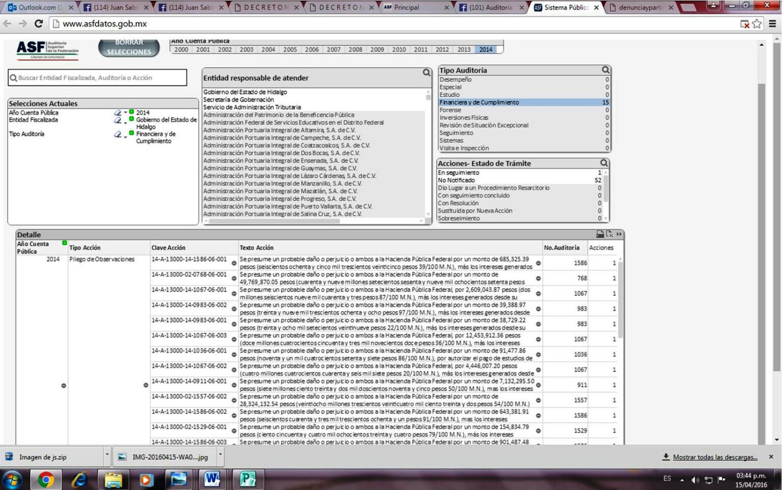Son muchos los millones de pesos que están en juego y en diferentes rubros, eso no lo digo yo, está plasmado en la página de la Auditoria Superior de la Federación a la que todos tenemos acceso gracias a la ley de Acceso a la Información Pública.