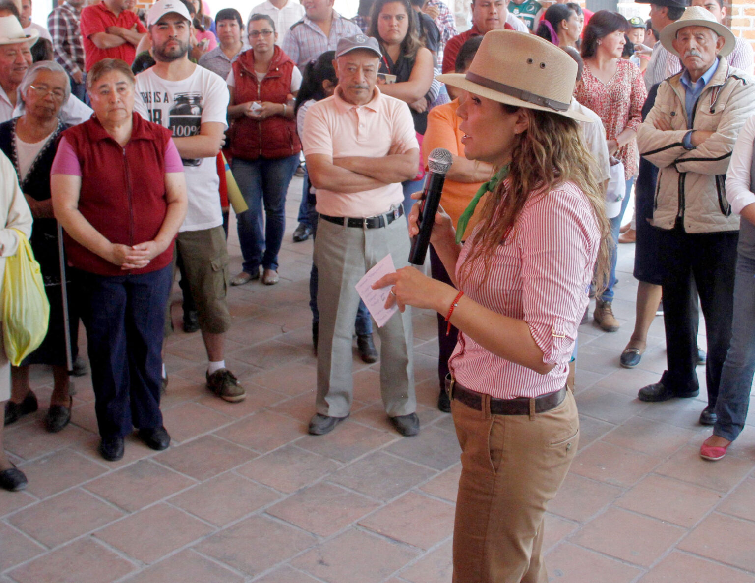Mayka Ortega Eguiluz, candidata del PRI a la diputación local por el Distrito XVIII Tepeapulco, sostuvo un encuentro con habitantes de Santiago Tepeyahualco, a quienes propuso la iniciativa de desarrollar un corredor textil.