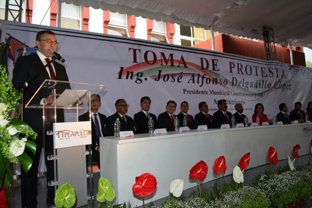 Al tomar la protesta de ley a los funcioarios que lo acompañarán en su administración, Alfosno Delgadillo, Presidnte Municipal de Tepeapulco destacó la responsabilidad de ser funcionario público y del compromiso que se debe tener para con la ciudadanía.