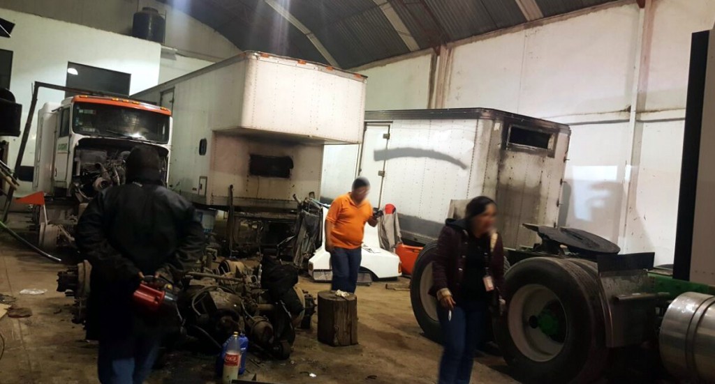 En la bodega ubicada en la Colonia La Loma, en Pachuca, fueron recuperados dos tractocamiones marca Kenworth, una cabina International color blanca con la leyenda “GUMERSINDO HIDALGO GOMEZ S.A DE C.V” así como tres cajas secas que presuntamente pertenecían a otros vehículos de carga que habían sido desmantelados, además de otras piezas de motores que presuntamente estaban a punto se ser comercializadas.