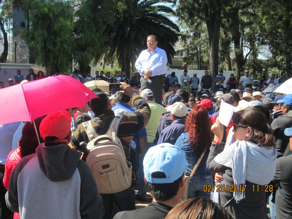 Percy Leonardo Espinosa Bustamante, Secretario General del Sindicato Único de Trabajadores al Servicio del Municipio de Pachuca que alberga a más de mil 200 empleados, a las diez horas de ayer, sábado 25 de febrero, encabezó una asamblea celebrada en las canchas de basquetbol del Parque Hidalgo.