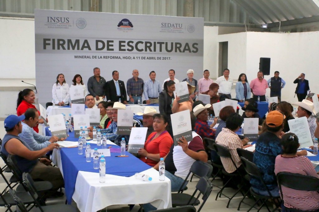 MINERAL DE LA REFORMA.- El Ayuntamiento de Mineral de la Reforma en coordinación con el Instituto Nacional del Suelo Sustentable (INSUS) de la Secretaria de Desarrollo Agrario Territorial y Urbano (SEDATU), llevaron a cabo la firma de 113 de escrituraciones de predios, en beneficio de igual número de familias mineralenses, pertenecientes a predios de la localidad de La Higa; esto con el fin de dar certeza jurídica de sus tierras y patrimonio de sus familias.