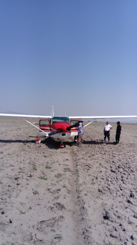 APAN, Hgo.- Una falla mecánica origino que el piloto de una avioneta se viera obligado a realizar un aterrizaje forzoso para evitar un fatal accidente.