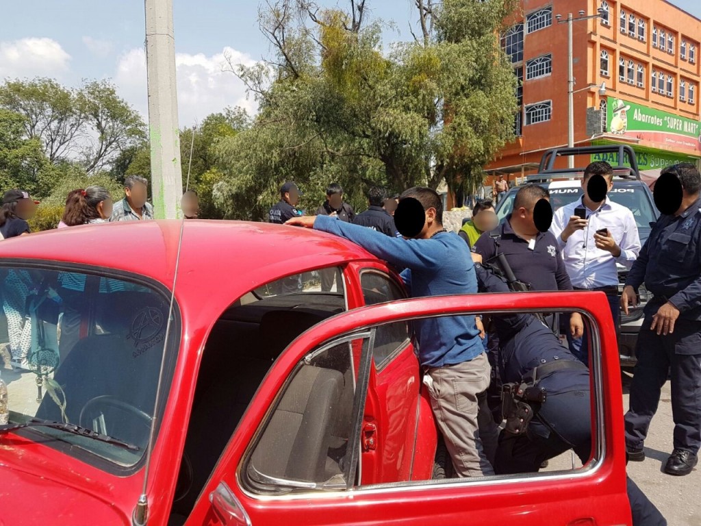 Fue en el municipio de Tepeji del Río, mediante un punto de revisión implementado por policías estatales y municipales sobre el bulevar San Mateo, donde intervinieron el vehículo Volkswagen, tipo Sedán, color rojo, placas de circulación del Estado de México.
