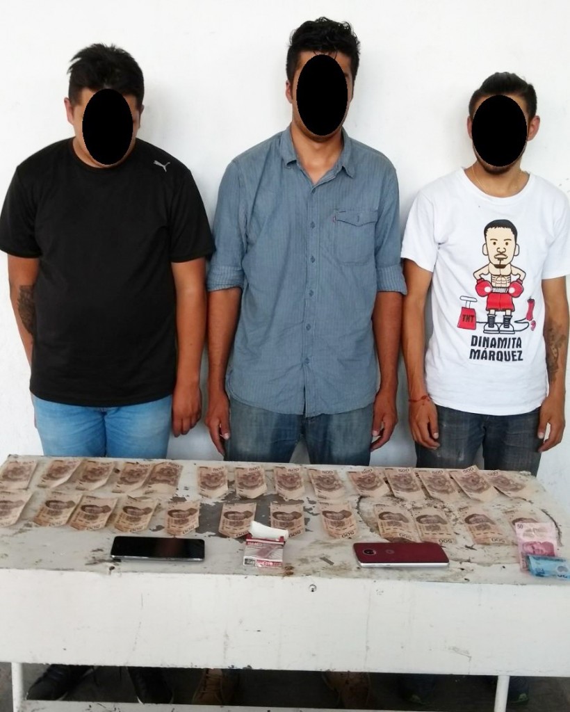 Les fueron encontrados 26 billetes de 500 pesos cada uno, al parecer apócrifos, por ende, fueron trasladados ante las instancias competentes para dar continuidad al proceso legal.