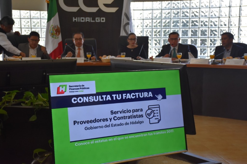 En Asamblea Extraordinaria del Consejo Coordinador Empresarial del Estado de Hidalgo, la secretaria de Finanzas Públicas presentó ante las y los consejeros, el Sistema de Consulta de Pagos de Facturas que permite en tiempo real, a los proveedores y contratistas que hayan emitido una factura a nombre del Gobierno del Estado de Hidalgo, conocer en que parte del proceso se encuentra su trámite para pago, evitando intermediarios y traslados a las diversas dependencias del Poder Ejecutivo.