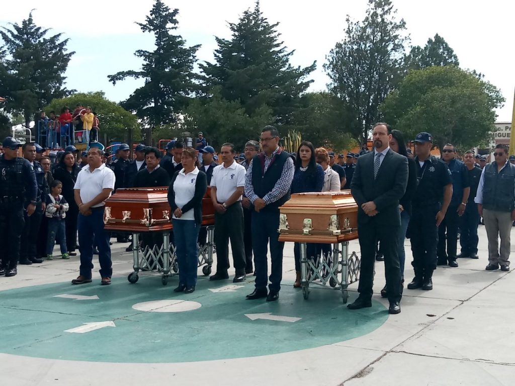 Antonio Espinoza Espinoza, Presidente Municipal de Emiliano Zapata, Monserrat Ramírez Monterrubio, Presidenta del DIF Municipal, Mauricio Delmar Saavedra, Secretario de Seguridad Pública de Hidalgo, integrantes de la Asamblea Municipal, funcionarios, Policías y familiares de las víctimas encabezaron la ceremonia luctuosa.
