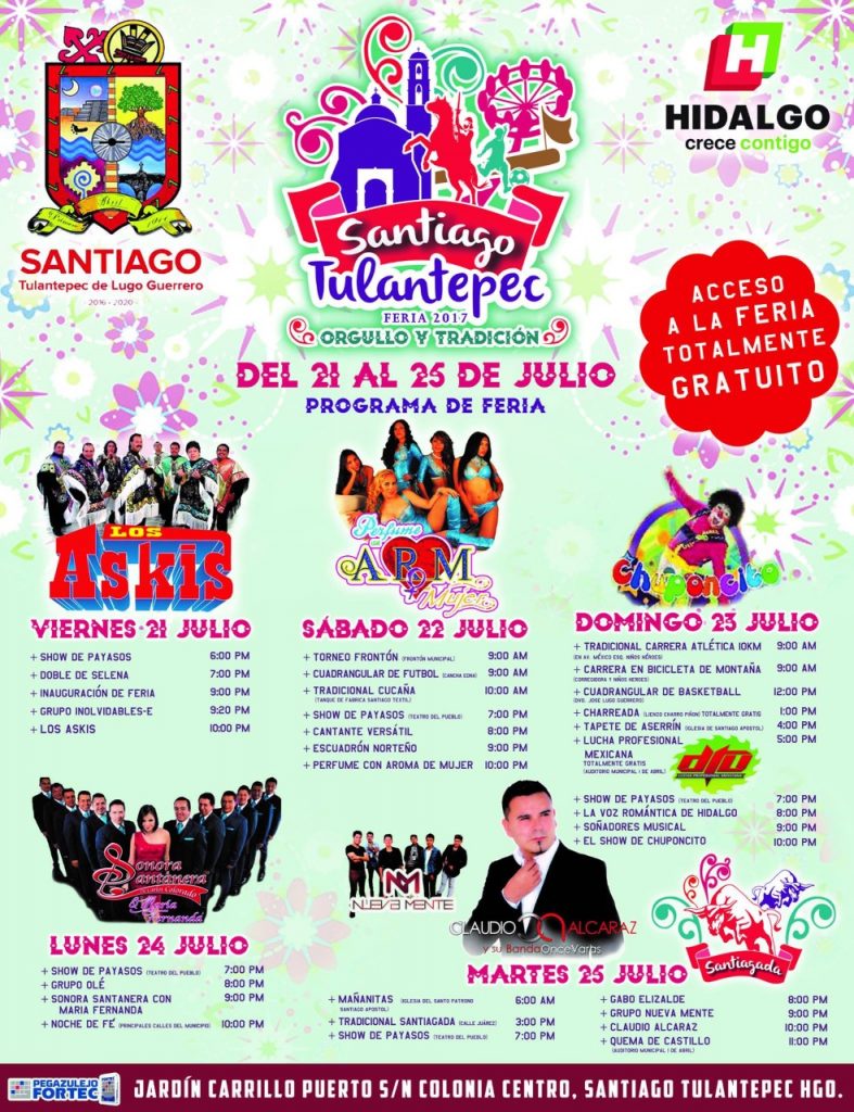 La noche de ayer, viernes 21 de julio, se llevó a cabo la inauguración de la tradicional feria anual de Santiago Tulantepec, lugar donde se ofrece exquisita gastronomía, concursos, juegos mecánicos, venta de artesanías y un gran número de atractivos para toda la familia, sin duda, una alternativa para este fin de semana.
