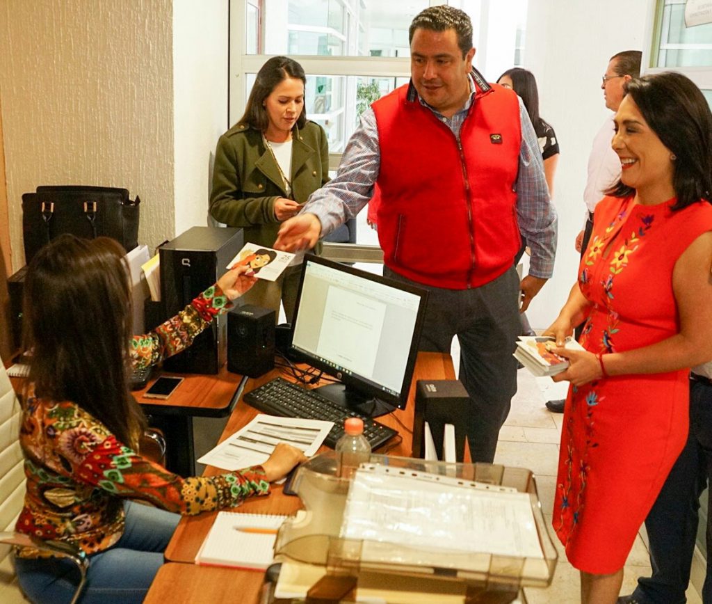 (PRI), Leoncio Pineda Godos, acompañado por la secretaria general Erika Rodríguez