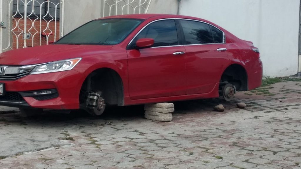 Vecinos del Fraccionamiento San Isidro, dieron a conocer que la madrigada del pasado 24 de octubre, tres hombres y una mujer con asombrosa habilidad robaron los cuatro neumáticos a un coche marca Honda Accord, modelo 2016, color rojo.