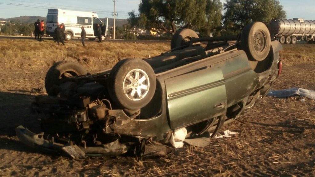 e se dieron cuenta que se trató de una salida de camino y volcadura de vehículo Dodge Voyager, color verde, placas MDP537, mismo que quedó con las llantas hacia arriba.