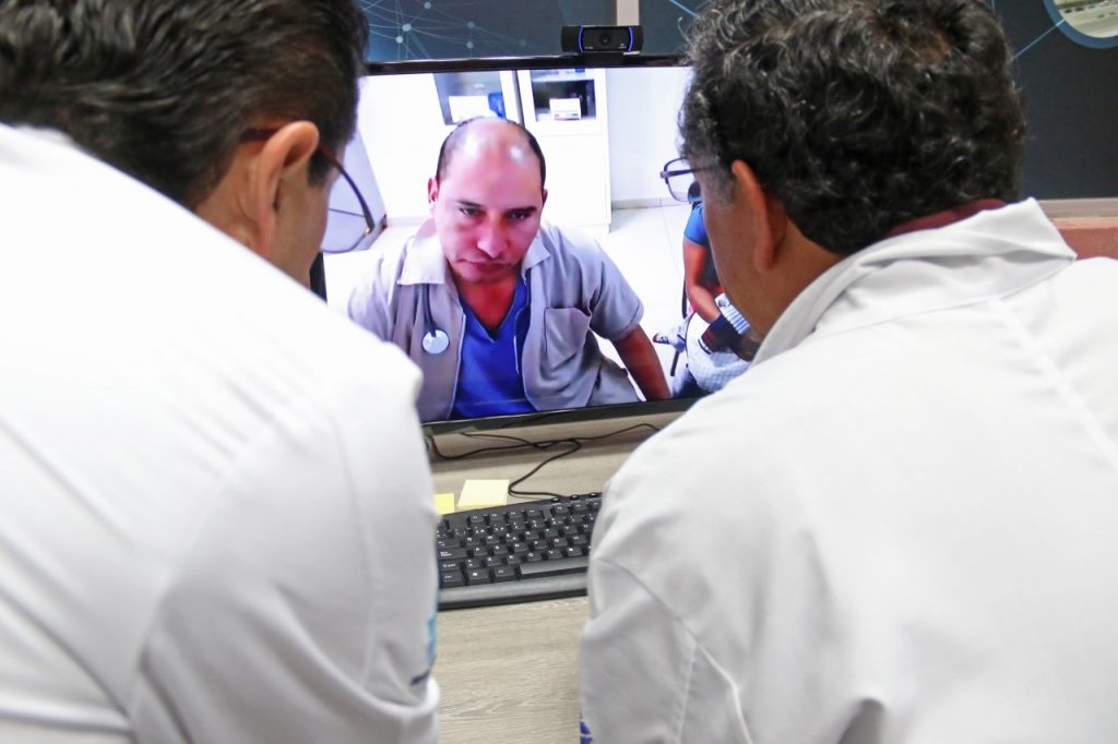 Pachuca, Hgo.- Resultado del modelo de innovación que impulsa la administración encabezada por el Gobernador de la Salud, Omar Fayad Meneses, quien ha puesto especial interés en estrategias que coloquen a Hidalgo a la vanguardia en el uso de la tecnología como una aliada en la atención de la salud, equipo médico multidisciplinario integrado por Cirujanos y Pediatras, se reunió esta mañana en el área de Telemedicina del Hospital General de Pachuca, para realizar a distancia una valoración médica del pequeño Carlos Hernández Amador, quien era tratado en una Unidad Médica del IMSS PROSPERA y que desde hace días presenta probable tumoración en el cuello.