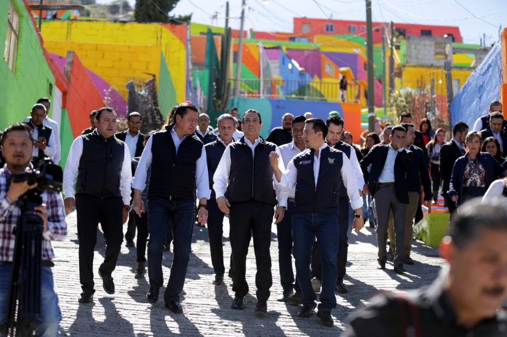 Pachuca, Hgo.-Como resultado del trabajo de una sociedad incluyente y altamente participativa en la tarea del rescate del tejido social, el gobernador Omar Fayad acompañado del secretario de Gobernación Miguel Ángel Osorio Chong, pusieron en marcha la segunda etapa del programa “Pachuca se pinta”, para beneficio de los habitantes de la colonia Palmitas de la capital hidalguense.