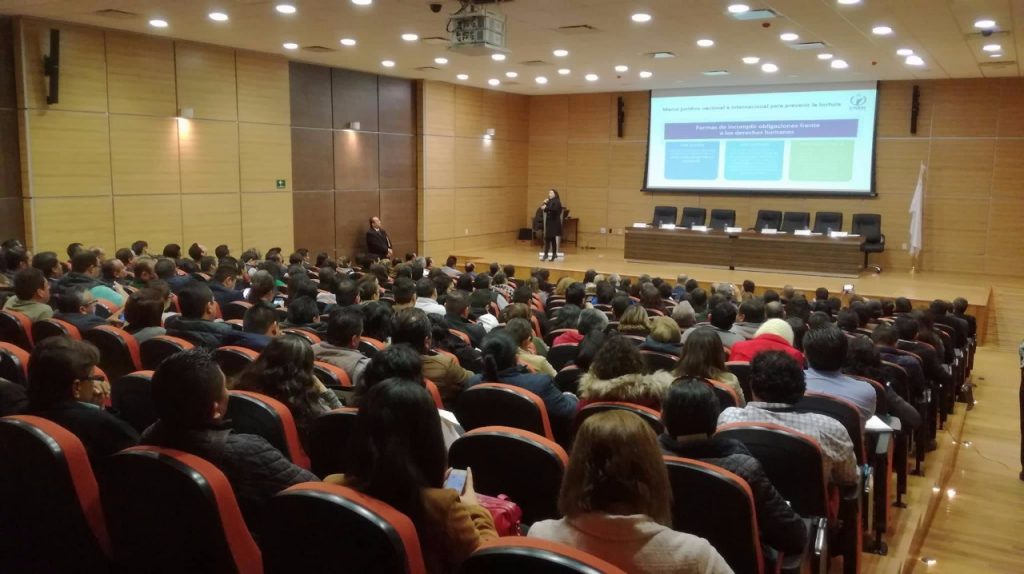 En las instalaciones del Instituto de Formación Profesional de la Procuraduría (IFPP), Cynthia Berenice Bello Toledo, integrante de la Secretaría Técnica del Consejo Consultivo de la Comisión Nacional de los Derechos Humanos (CNDH) impartió a Agentes del Ministerio Público, Peritos y Agentes de la Policía Investigadora una capacitación sobre el “Marco Jurídico Nacional e Internacional para Prevenir y Sancionar la Tortura”.