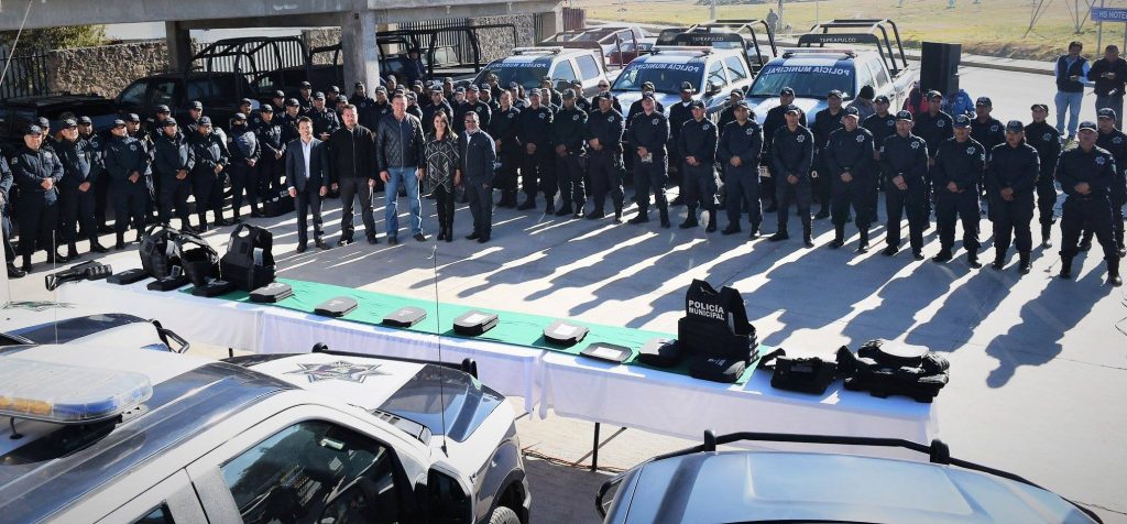 Pioneros en Hidalgo al entregar equipo a mujeres policías.