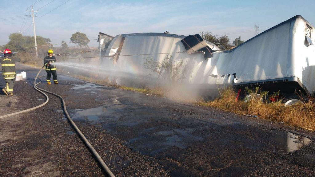 Las maniobras continuaron hasta la tarde del jueves pasado, cuando prácticamente se vacío el contenido de la pipa, que finalmente pudo ser reubicada y puesta a disposición de las autoridades correspondientes, ya que el tractocamión que remolcaba dicho contenedor fue robado días antes en Querétaro.