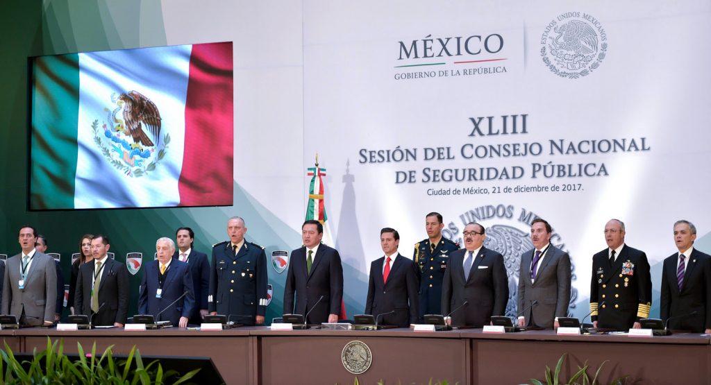 El gobernador Omar Fayad participó este jueves en la XLIII Sesión del Consejo Nacional de Seguridad Pública presidida por el presidente Enrique Peña Nieto; ahí ante gobernadores y representantes de la sociedad civil, el presidente promulgó la Ley de Seguridad Interior, no obstante que para emitir su declaratoria, se esperará hasta que la Suprema Corte de Justica de la Nación (SCJN) revise su constitucionalidad.
