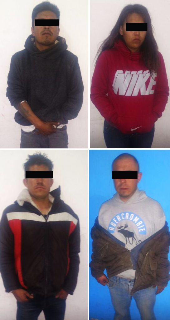 Tres hombres y una mujer fueron detenidos en coordinado operativo policial, relacionados con el presunto robo de una camioneta en el municipio de Francisco I. Madero, cuyo propietario pidió el apoyo de las autoridades de manera oportuna, lo que propicio la pronta reacción de los agentes locales y estatales.