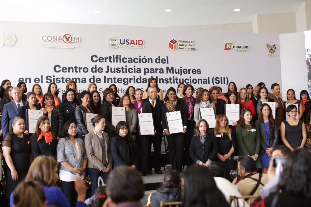 El Centro de Justicia para Mujeres del Estado de Hidalgo (CJMH), obtuvo la certificación en el Sistema de Integridad Institucional (SII) el cual fue avalado por la Comisión Nacional para Prevenir y Erradicar la Violencia contra las Mujeres (CONAVIM), así como por la Agencia de los Estados Unidos para el Desarrollo Internacional (USAID), por sus siglas en inglés.