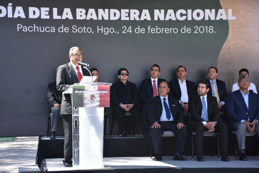 Con la participación de estudiantes de diversas escuelas de la entidad, así como de autoridades civiles y militares, se llevó a cabo en Pachuca la ceremonia cívica por el Día de la Bandera Nacional, la cual fue encabezada en representación del gobernador Omar Fayad Meneses, por el secretario de Educación Pública de Hidalgo, Atilano Rodríguez Pérez.
