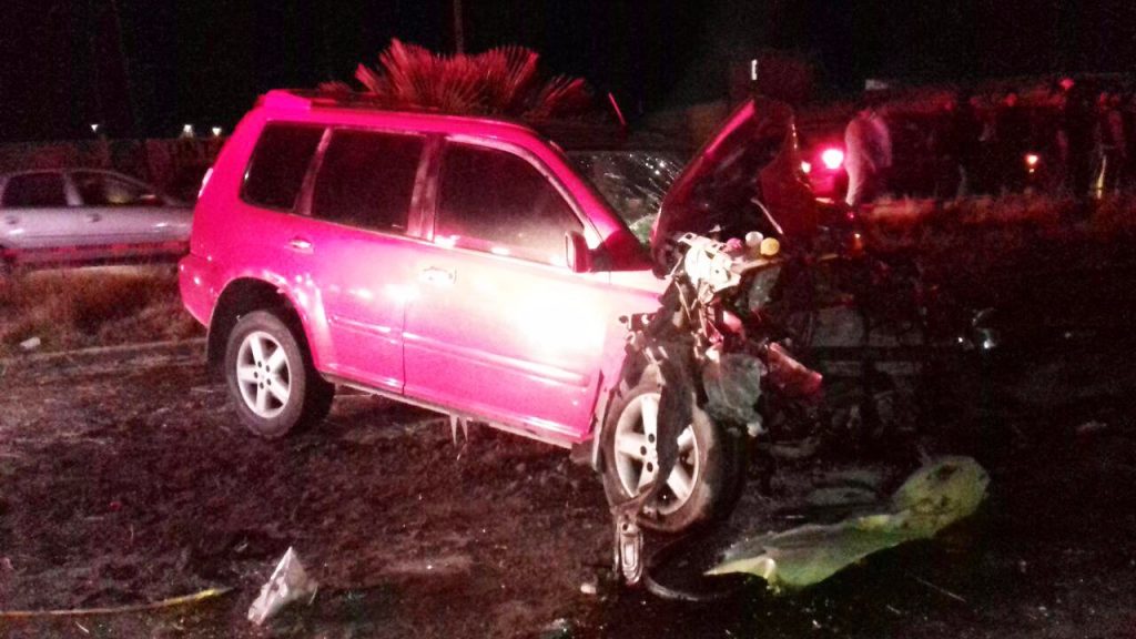 En probable choque frontal participaron los vehículos Volkswagen Jetta, color verde, placas HNJ-11-15 donde murieron cuatro de sus ocupantes identificados como Julio César P.H., Natividad S.R., Cintia P.V. y Epifanía A.H., de 33, 37, 18 y 76 de edad, respectivamente. Un quinto pasajero de nombre Joselyn V.P., de 12 años, resultó herida y fue trasladada a una clínica de Actopan.
