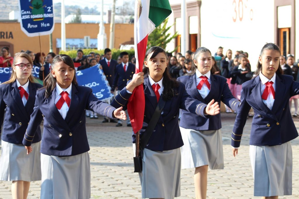 APAN, Hgo.- Con motivo de la celebración del día de la bandera, se llevó a cabo un homenaje cívico a cargo de jóvenes de la Escuela Secundaria General N° 2 “Jesús Romero Flores”, donde se rindió honores a nuestro lábaro patrio frente a las autoridades municipales y educativas, integrantes del H. Ayuntamiento Municipal, funcionarios públicos, alumnos de escuelas primarias y padres de familia.