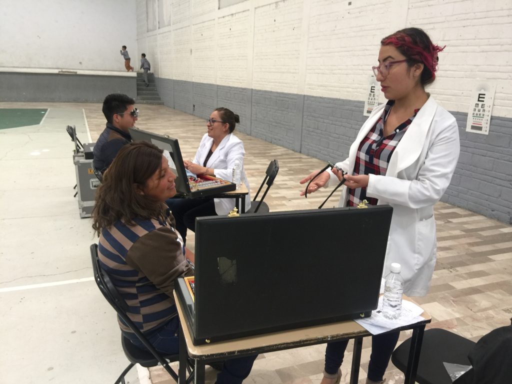 En el auditorio municipal los voluntarios recibieron a personas del municipio y localidades vecinas a quienes les realizaron los exámenes correspondientes y entregaron sus anteojos.