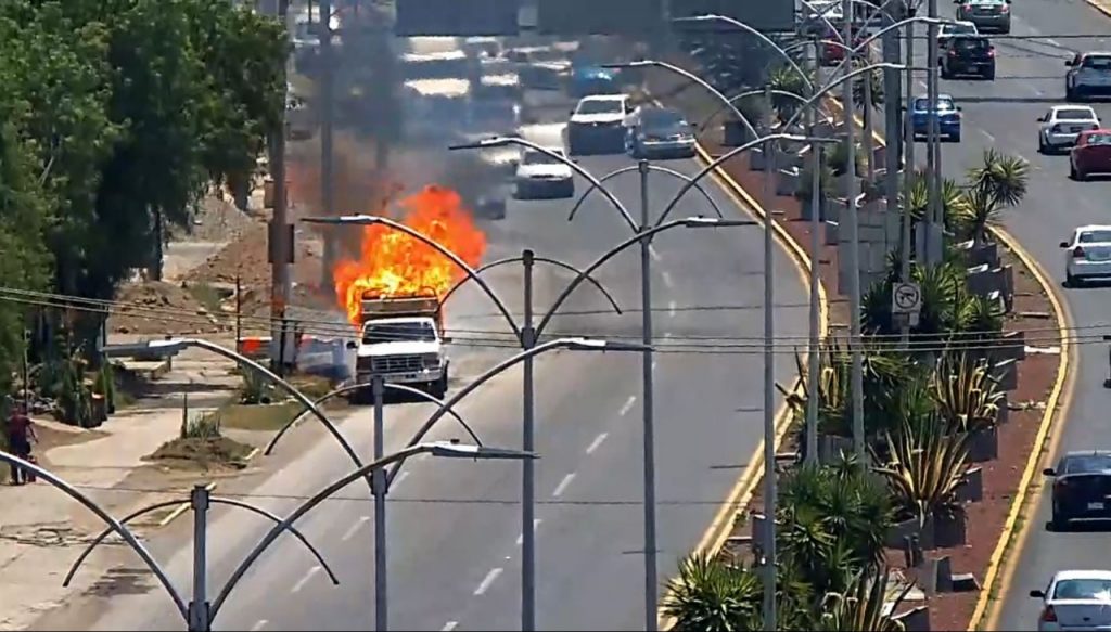 PACHUCA, Hgo.- A través del sistema de videovigilancia personal de la Secretaría de Seguridad Pública detecto que un vehículo se estaba incendiando sobre el Boulevard Luis Donaldo Colosio, a la altura de Bosques del Peñar, sin reportar lesionados.