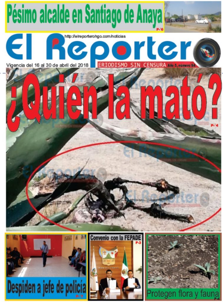 EL REPORTERO informa a sus lectores, amigos y población en general que ponemos nuestro mejor esfuerzo trabajando en apoyo a nuestra sociedad, así hemos llegado al número 94 de nuestra edición impresa.