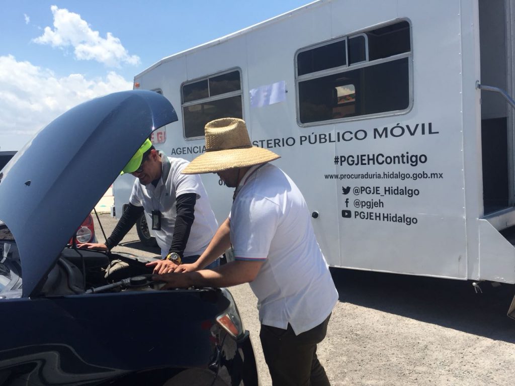 En estas acciones se contó con el apoyo del personal especializado a bordo de la Unidad Móvil del Ministerio Público de la PGJEH, en donde se realizaron consultas y se expidieron constancias de vehículo no robado.