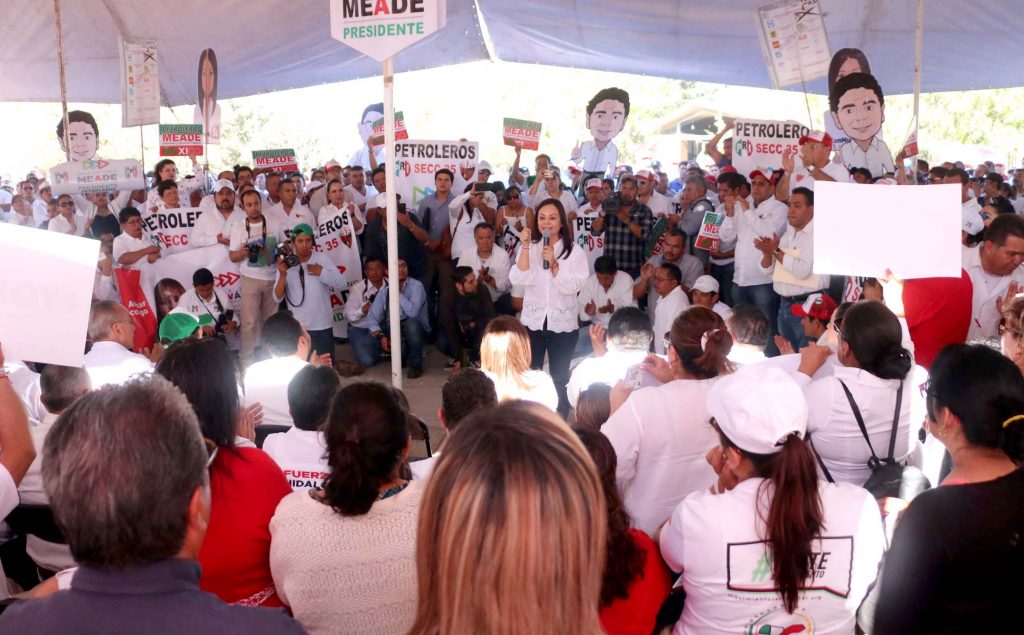 Por su parte los trabajadores petroleros enfatizaron que el Partido Revolucionario Institucional (PRI) presenta los mejores candidatos, personas serias y de compromiso social, que entienden las necesidades de la población y el entorno internacional del país, por lo que históricamente los han apoyado, como lo harán en este proceso con Pepe Meade a la presidencia de la República, Nuvia Mayorga, al Senado, junto a Cuauhtémoc Ochoa Fernández, candidato a diputado federal y Areli Narváez Bravo, aspirante a la diputación local, quienes también recibieron el apoyo del gremio petrolero al lado de Mayorga Delgado.