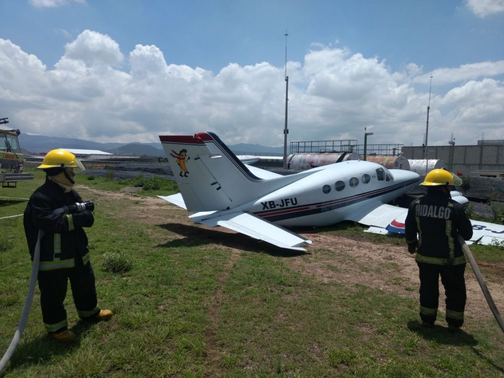 Se trata de la avioneta Cessna, tipo 421, con matrícula XB-JFU, que salió de la pista sin resultar personas lesionadas. Únicamente hubo derrame de aceite.