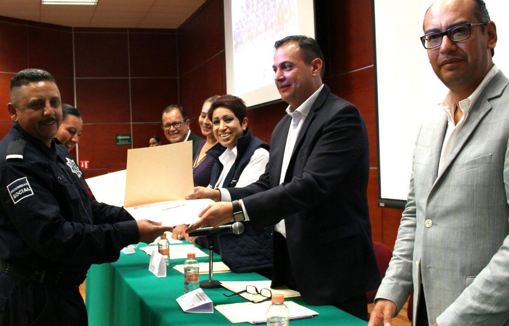 En la ceremonia estuvieron presentes: José Israel San Agustín Cabrera, director de Seguridad Pública de Tulancingo; Nancy Esquivel García, directora general de Vinculación Institucional del Secretariado Ejecutivo del Consejo Estatal de Seguridad Pública; y Víctor Austria Mercado, secretario ejecutivo de la Comisión de Derechos Humanos de Hidalgo.