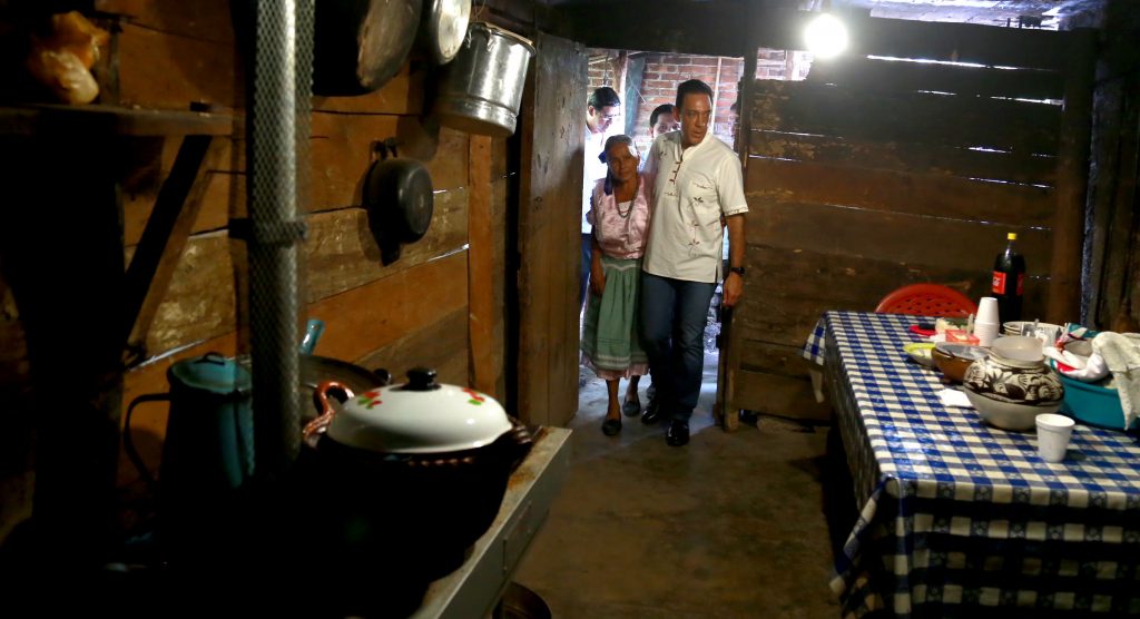 San Bartolo Tutotepec, Hgo.- Durante la gira por el municipio de San Bartolo Tutotepec, concretamente en la comunidad de “Rincón de Cerro Macho”, el gobernador Omar Fayad conoció el modelo de vivienda rural sustentable, un prototipo basado en bioconstrucción, acondicionado con sanitario y estufa ecológicos, paneles solares, huerto familiar y módulos avícolas, que serán aprovechados en las poblaciones que por su ubicación geográfica se encuentren más alejadas de las cabeceras municipales, y en las que se carecen de servicios básicos.