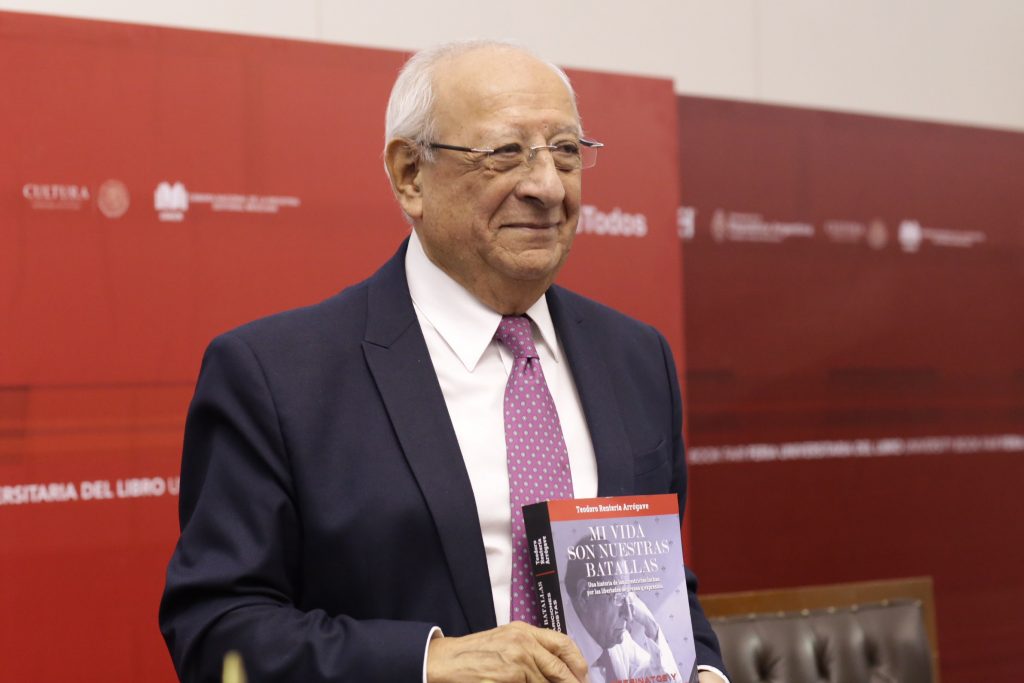 Pachuca, Hgo. – El periodista Teodoro Rentería Arróyave, presentó su obra actualizada “Mi Vida Son Nuestras Batallas”: Una Historia de las irrestrictas luchas por las libertades de prensa y expresión”, en la Feria Universitaria del Libro que organiza la Universidad Autónoma del Estado de Hidalgo.