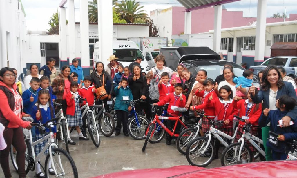 APAN, Hgo.- Por medio del programa piloto “En Bici Contigo, Ayúdame a llegar”, impulsado por el Sistema DIF Estatal de Hidalgo, y en coordinación con elGobierno Municipal de Apan y el DIF Municipal, se entregaron 18 bicicletas a niños y niñas de las comunidades de Barrio Guadalupe, San José Jiquilpan, La Leona y El Tigre, con la finalidad de combatir la deserción escolar en el municipio.