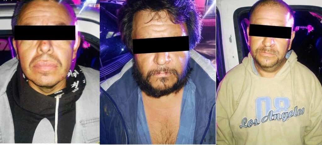 Esto derivo en la detención de los tres individuos que tripulaban la camioneta, todos vecinos del municipio de Huasca de Ocampo, identificados como M.C.M., M.A.C.M. y J.F.P., de 45, 34 y 22 años de edad, respectivamente. Quedaron a disposición del Ministerio Público del fuero común.