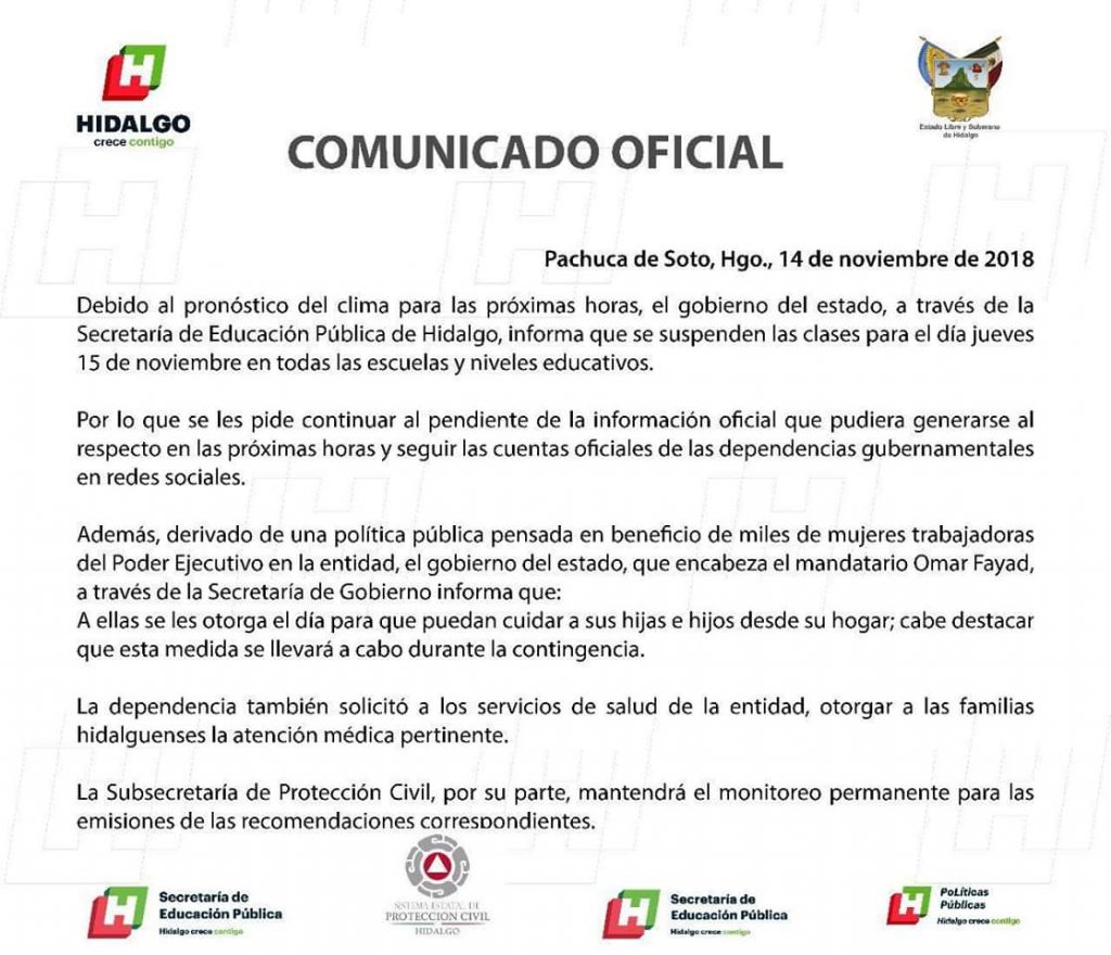 Las autoridades buscan proteger la salud del escolapios en virtud de las bajas temperaturas que se registran en la geografía de Hidalgo.