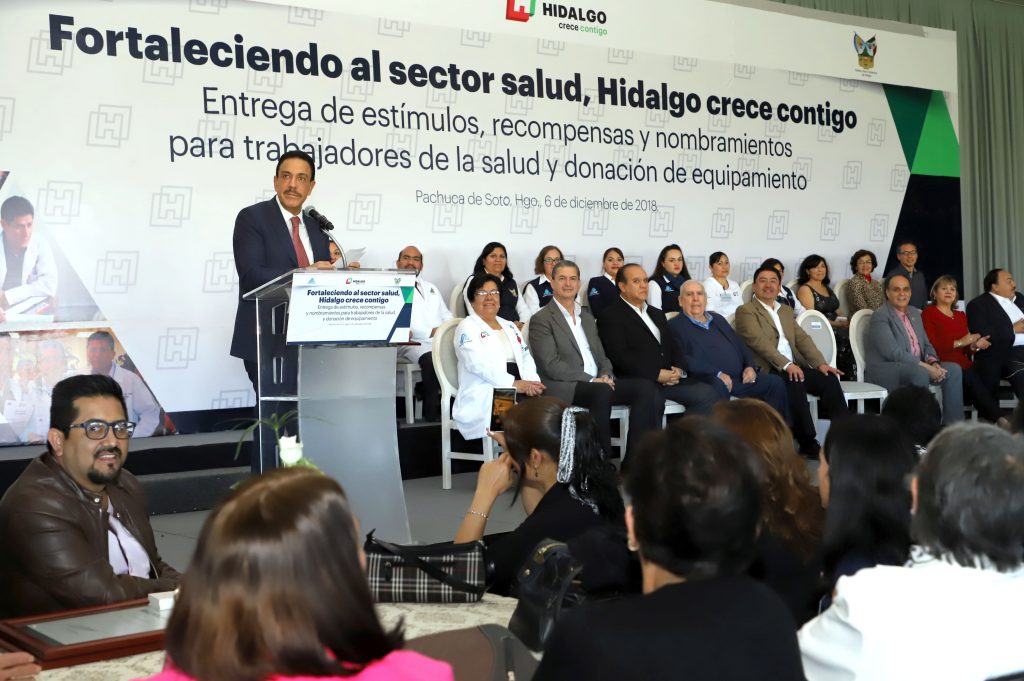 Con la finalidad de reconocer los años de dedicación y esfuerzo de los trabajadores del sector salud, el gobernador Omar Fayad realizó la entrega de estímulos, recompensas y nombramientos para este sector, como un acto de justicia.