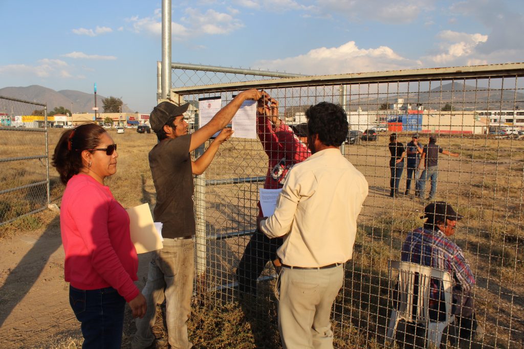 En virtud que no recibió el emplazamiento a huelga, este fue colocado en la malla ciclónica de acceso al predio, justo en la entrada y salida de los camiones.