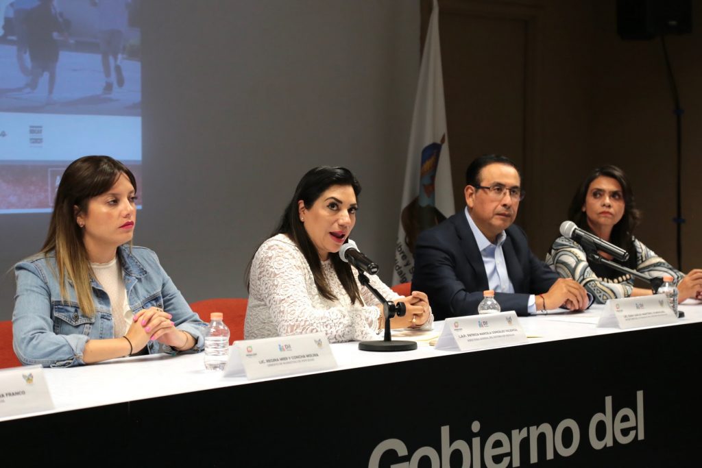 En conferencia de prensa la titular del Sistema DIF Hidalgo Patricia Marcela González Valencia en compañía del secretario del Patronato Juan Carlos Martínez Domínguez, la vocal Gabriela Mendoza y la gerente de Marketing de Pepe Jeans Regina Mier y Concha Molina dieron a conocer la “Venta con Causa”.