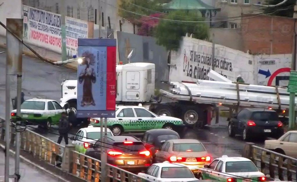 Por medio del sistema de videovigilancia se detectó tractocamión color blanco colisionado con un taxi metropolitano.
