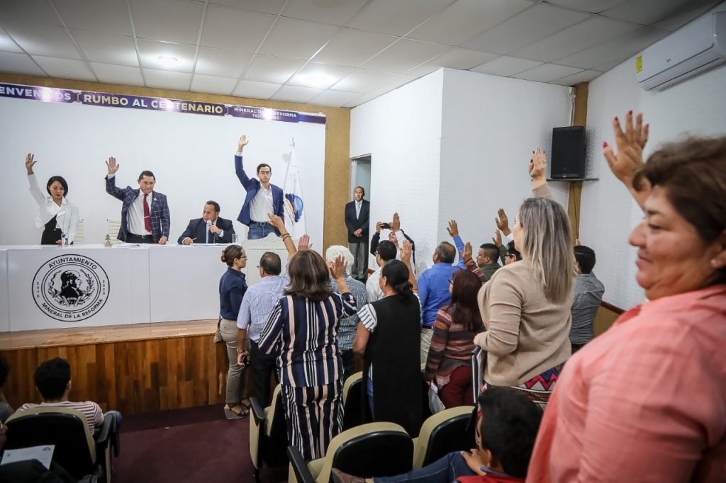En el marco de la quincuagésimo séptima sesión ordinaria de cabildo del Ayuntamiento de Mineral de la Reforma, presidida por el alcalde Raúl Camacho Baños, la asamblea municipal aprobó por unanimidad el paquete de modificaciones constitucionales, derivado de los cambios en ocho artículos con anexos y modificaciones enviados por el Congreso Libre y soberano del Estado de Hidalgo.