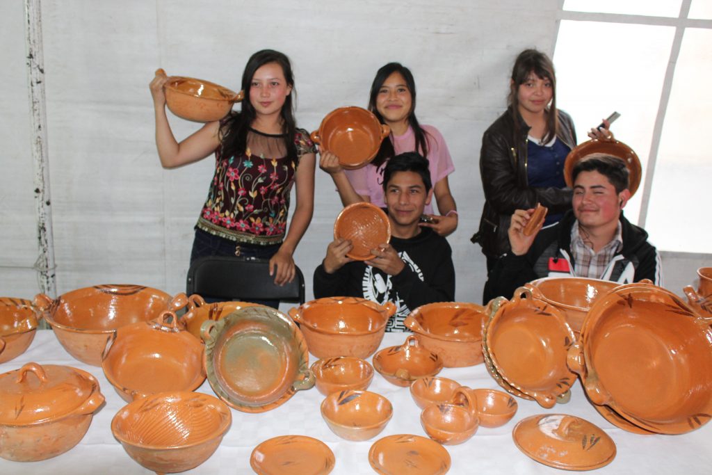 Encontraron exposición de cazuelas, ollas, jarros y una gran variedad de productos de barro que orgullosamente fueron exhibidos por jóvenes alumnos del colegio de bachilleres.