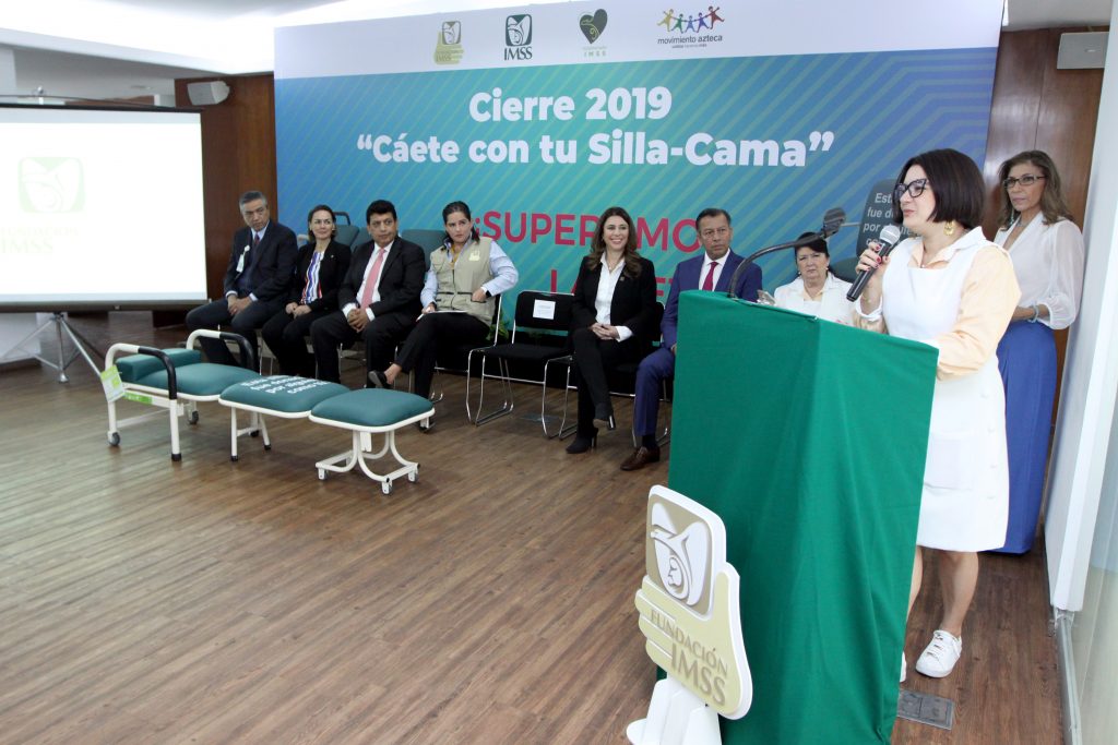 Durante su intervención, la directora General de Fundación IMSS, Mtra. Ana Lía García García, destacó que este año se rebasó la meta de la donación de sillas-cama, que era de 2 mil más una, y agradeció a todas las personas que contribuyeron a esta noble causa.