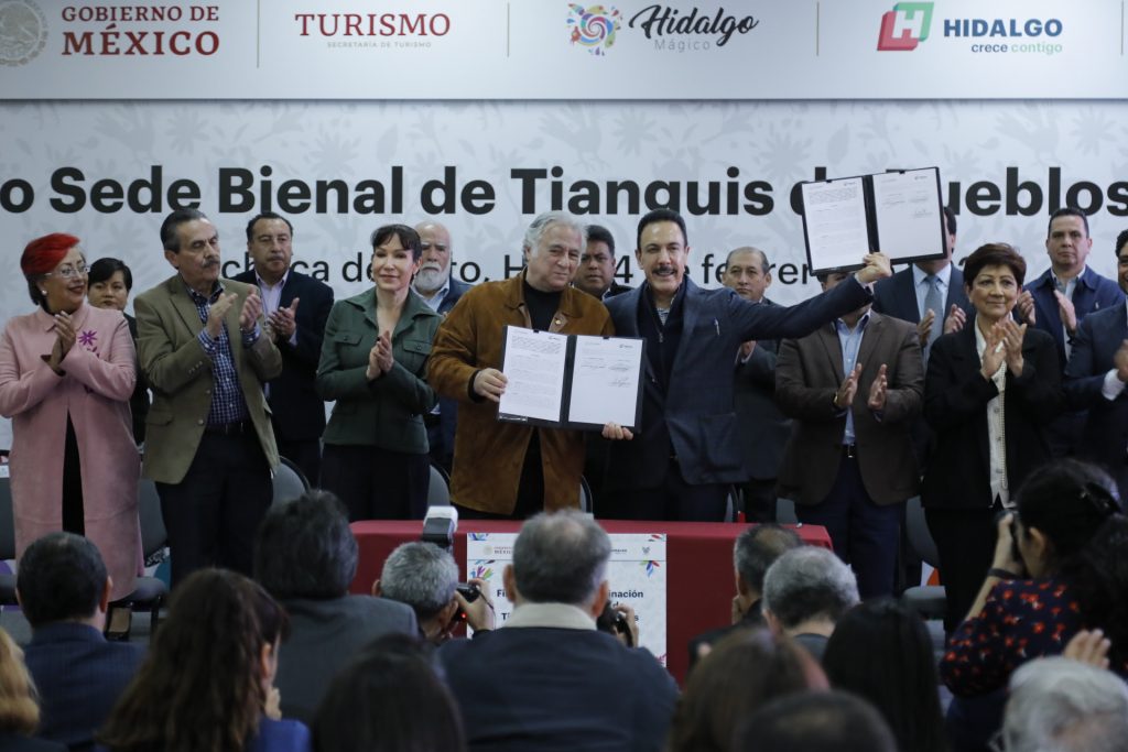 Con la firma del protocolo de entendimiento, “damos un paso muy importante porque Hidalgo se pone muy de relieve en el mapa turístico nacional, porque se convierte a partir de hoy, por voluntad del Gobierno de la República y por la confianza del presidente y por el impulso del secretario de turismo en el estado, en sede permanente bienal del Tianguis turístico de Pueblos Mágicos”.